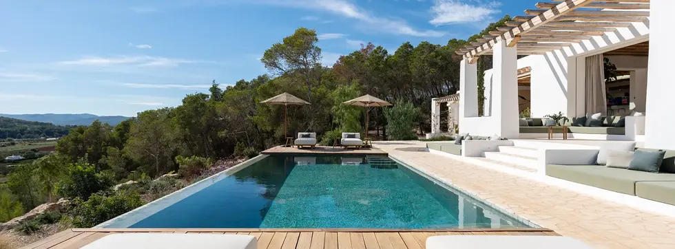 Experience unmatched luxury with this remarkable villa by Blakstad, situated atop a serene hill in the charming town of Santa Gertrudis, Ibiza. Boasting sweeping panoramic views of the verdant valley and the distant Mediterranean, this impressive 350 m² residence with five bedrooms rests on an expansive 23,000 m² plot, perfectly marrying Ibiza’s architectural traditions with contemporary elegance. Designed by the renowned Blakstad studio, the villa exemplifies refined craftsmanship, modern design, and attention to detail, while celebrating the island’s cultural heritage through high-quality materials and advanced technology.