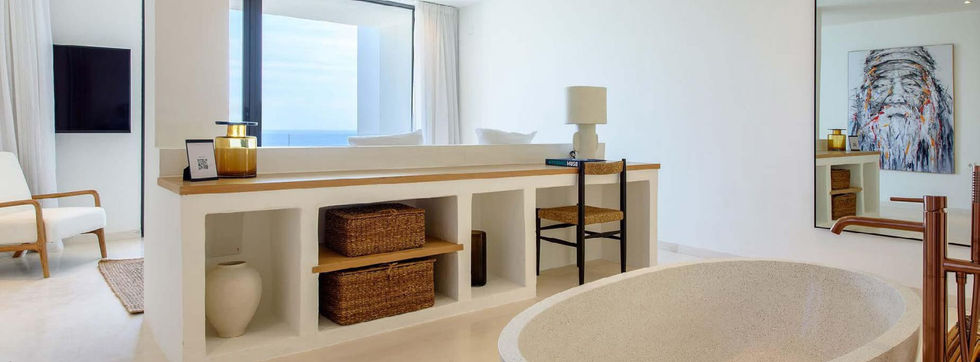 Located in the eastern part of Ibiza, within the exclusive Roca Llisa community, the villa enjoys proximity to the island’s only golf course, as well as secluded beaches such as Cala Olivera, and popular coastal spots like Talamanca and Cala Bonita. The village of Jesús is just 10 minutes away, Ibiza Town 15 minutes, and the airport around 20 minutes. Facing southwest, the property receives excellent sunlight throughout the day and offers panoramic views of the hills, golf course, and the Balearic Sea.