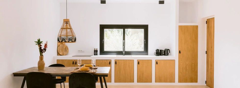 The location is notably strategic: Ibiza Airport is around 3 minutes away, while Ibiza Town is reachable in approximately 10 minutes. Iconic beaches such as Ses Salines, Cala Jondal and Sa Caleta are close, as is the renowned Blue Marlin Ibiza. Inside, a multi-level open-plan living and dining space is filled with natural light, anchored by a fireplace and a fully fitted designer kitchen with high-end appliances, creating an inviting home designed for year-round living and effortless entertaining.