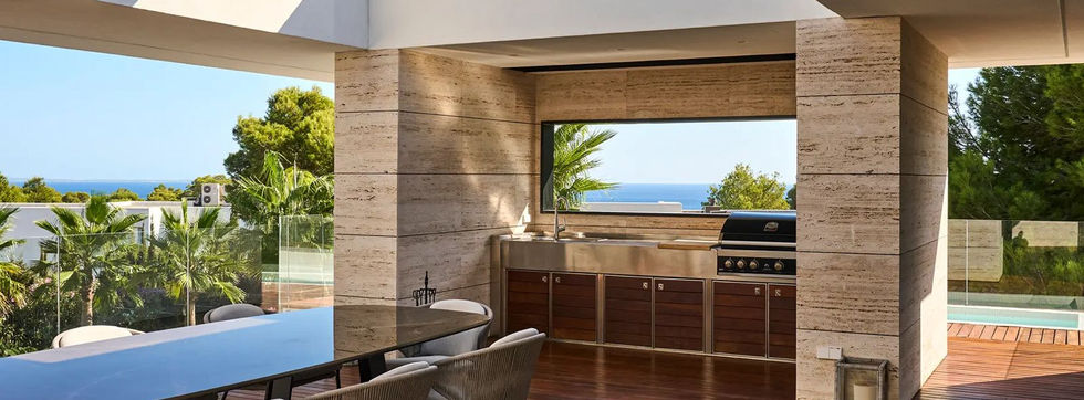 Outdoor living is crafted for effortless entertaining: a heated L-shaped pool (15 m²) with automatic cover anchors the main terrace, while a second pool sits beside the fully equipped outdoor kitchen, creating a true resort-style setting. A modern gym with boxing zone and a private sauna complete the lifestyle, while ducted air conditioning, underfloor heating, and 24-hour security ensure comfort and peace of mind in every season. With all planning and legal documentation fully compliant, Villa Elegancia represents a secure and compelling opportunity in one of Ibiza’s most sought-after addresses.