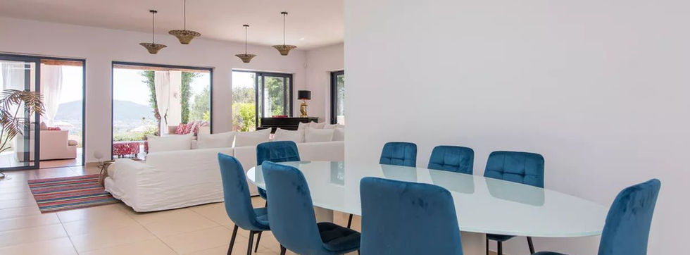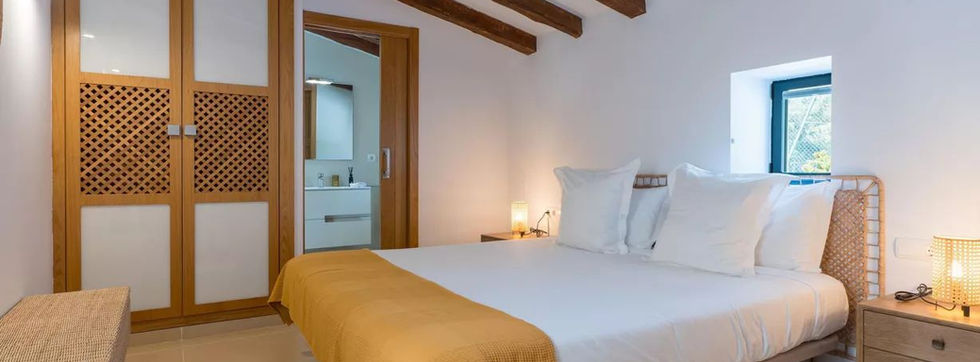 Just a 10-minute drive from Ibiza Town, this estate offers the rare balance of seclusion and immediate access to the island’s most celebrated dining and nightlife. The interiors are spacious and welcoming, ideal for hosting family and friends, while subtle sea views add a soft coastal note to the calm garden setting.